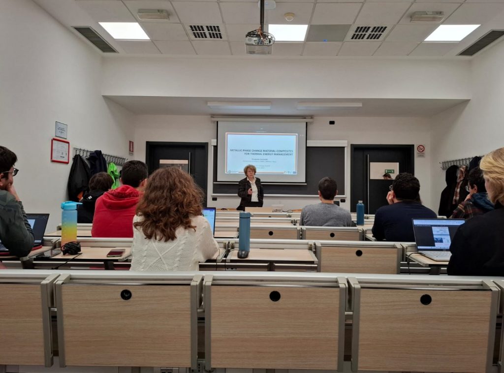 As part of the project’s outreach activities, a university lecture was held focusing on the core topics of the item of Metallic Phase Change Materials composites for thermal energy storage and management. The lecture, held on 16/12/2025, was specifically addressed to MS students of the ‘Material for Energy’ course at Politecnico di Milano.
